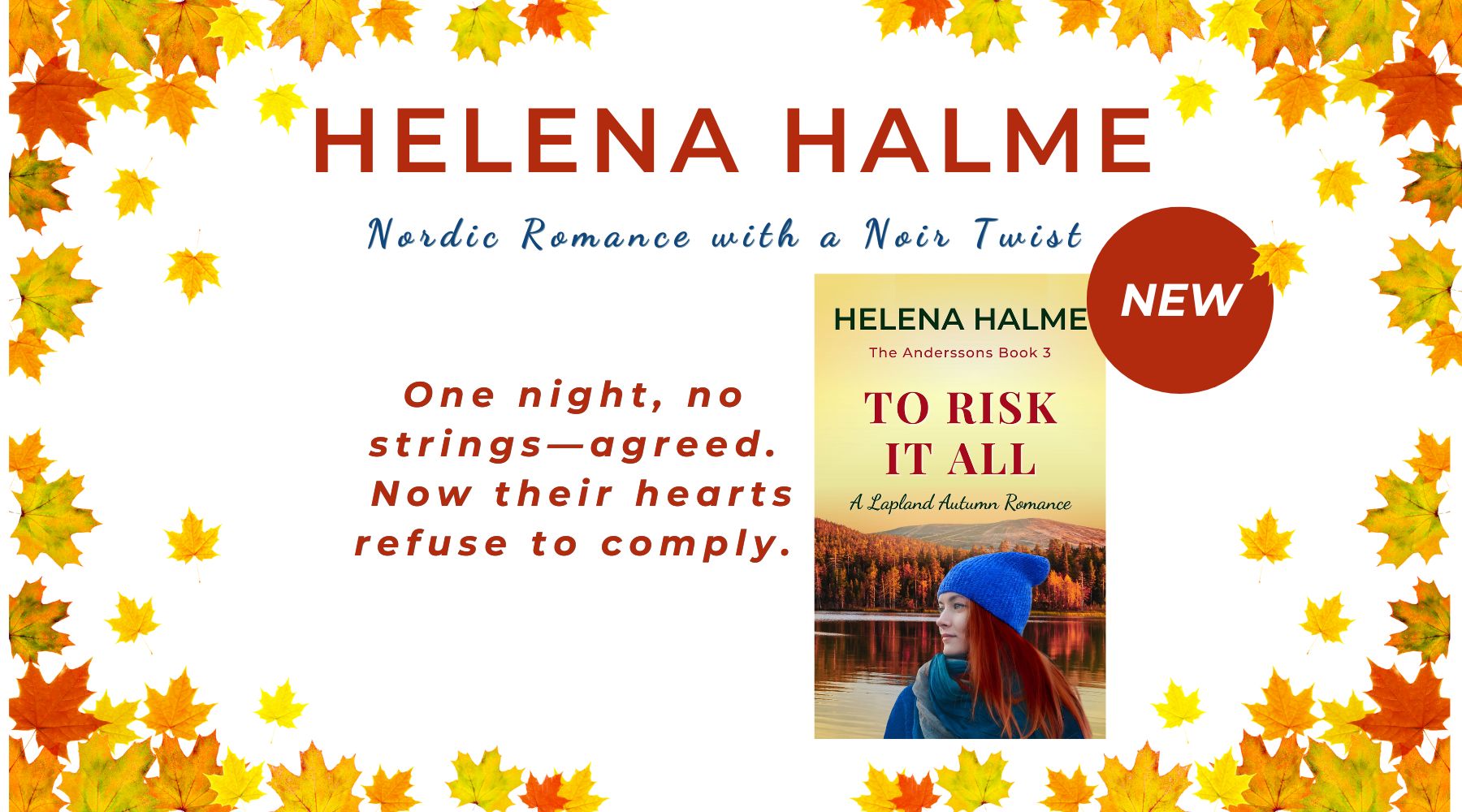 Release brought forward: To Risk It All (The Anderssons Book 3) lands by the end of November 2025—six months early. A standalone Lapland romance. Special direct price $2.99/£2.99/2,99€ (elsewhere $4.99)....